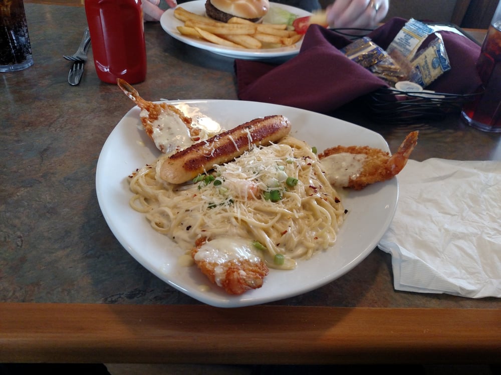 Shrimp, scallops, and clams tossed with pasta in a rich, cream sauce. Served with garlic bread and one side choice.